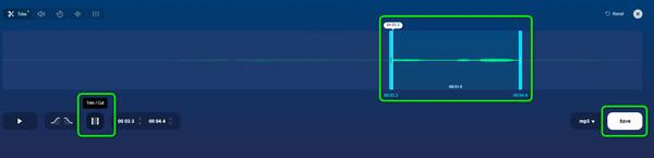 Step 4Now, go to the Timeline and start cropping or trimming the MP3. You can use the Slider to remove the unnecessary audio part. You can also use the Set Start and Set End option to crop the MP3. Click Save to finish the process finally.