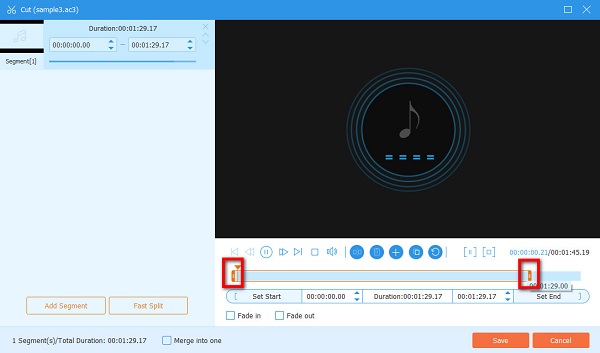 Select Cut, adjust the sliders to the selected portion, divide the section if necessary, and remove the other unwanted sections.