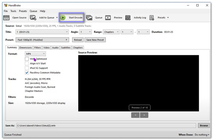 Step 4 When you are ready, click the Start Encoding button. HandBrake will start converting your MOV file to OGG.