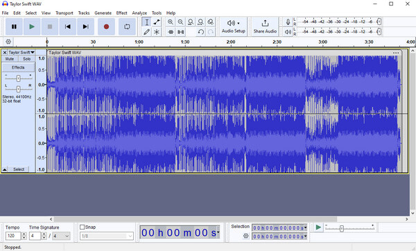 Step 1Download Audacity from the official website. Launch and click File from the main interface. Select Import > Audio to upload your WAV files.