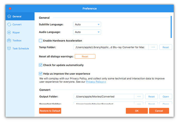Before starting to convert Blu-ray or DVD files, do not forget to make the preference settings according to your needs.