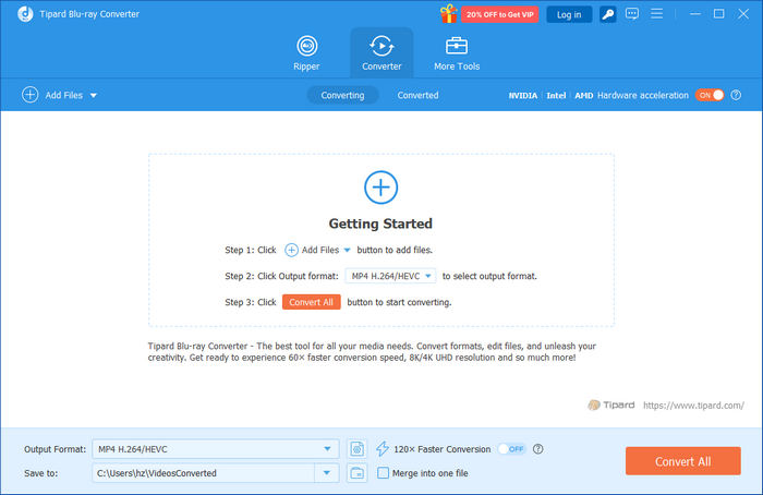 If you want to rip Blu-ray to digital formats for easy playback on devices, just find the Rip All button. Tipard Blu-ray Converter will quickly rip Blu-ray to your desired video format.