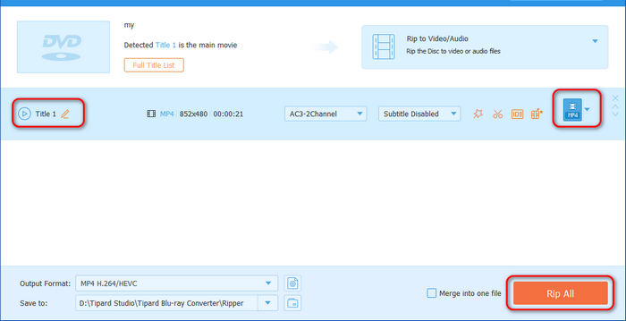 Step 5 Once done, head to the Save to option and choose where to save the decrypted video. After that, press the Rip All button to start the process.