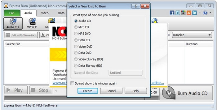 If you want to use an excellent burner that can support 4K content, we suggest using Express Burn. This burner was designed by NCH software. What we like here is that it can offer an amazing performance. It also has fast-burning software, which is good news for all users. In addition to that, you can burn various content, such as audio, video, data, and more. This software is perfect for completing tasks and playing Blu-ray on a PC afterward. However, there are also drawbacks you can encounter. If you are a new user, you must ask for guidance when using this software. It is because it has some complicated functions that may be confusing.