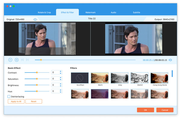 With Effect, Trim, Crop and Watermark four video editing functions, you can easily edit any DVD file to create personalized video.