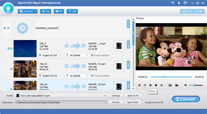 The PlayStation 3 (officially abbreviated as PS3) is the third home video game console produced by Sony Computer Entertainment and the successor to the PlayStation 2 as part of the PlayStation series. Main selling point of PS3 is not to provide a home multimedia game platforms, but lead players into the era of Blu-ray discs and high-quality audio and video. Many people have never thought of loading up their PS3 with movies instead of games as an alternative. If you want to experience this feature of your PS3, Tipard DVD Ripper is an available way.