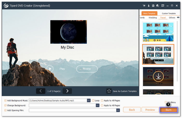 Moreover, Tipard DVD Creator offers several handy features. You can pick one from the several templates to customize the DVD menu and change buttons, text and the background. Also, it allows you to combine many videos into one chapter or split a long video into several chapters. Before burning, you can watch your created DVD using its built-in preview screen. Now, let us look at the steps to get started.