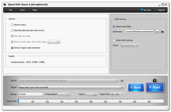 Many DVDs, especially the large ones, can be tricky to copy directly onto another disc because of their size. Thankfully, there is a tool that can help you with this. Aside from the fact that it can copy and clone DVDs, Tipard DVD Cloner allows you to compress a DVD on Mac and Windows from DVD-9 (which holds more data) to DVD-5 (which has less capacity). It is done by adjusting the target size during the setup process. It makes it perfect for copying larger DVDs to a single-layer disc without losing important details.