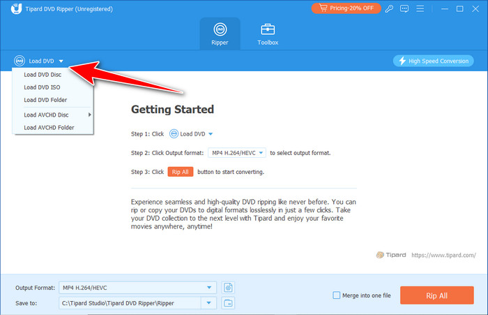 Part 2. Rip All Types of DVDs to H.265 with Tipard DVD Ripper