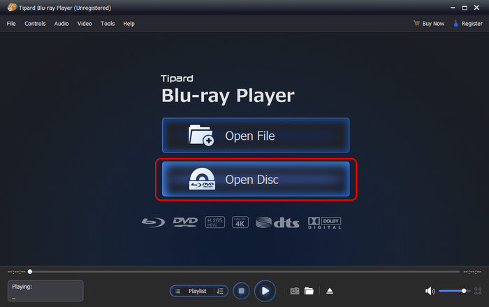 Step 1Insert your DVD into your computer. Launch Tipard Blu-ray Player and click the Open Disc button to load your DVD.