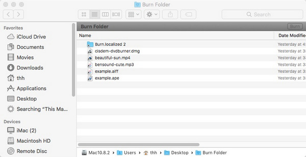 Next is through Finder, which is exclusive to Mac. Quickly burn DVDs with a simple right-click option. Follow the steps below.