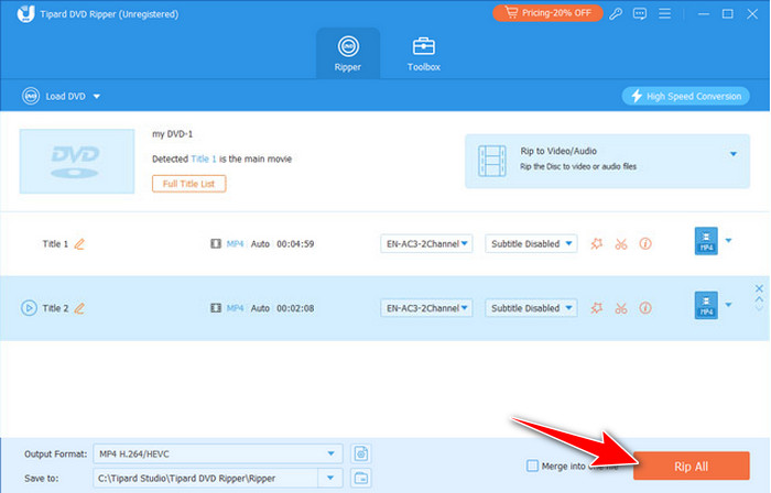 Step 5 To start the processing, click the Rip All button and wait several minutes. But if you want to rip subtitles from DVD, you are lucky because this app has a feature to handle it.