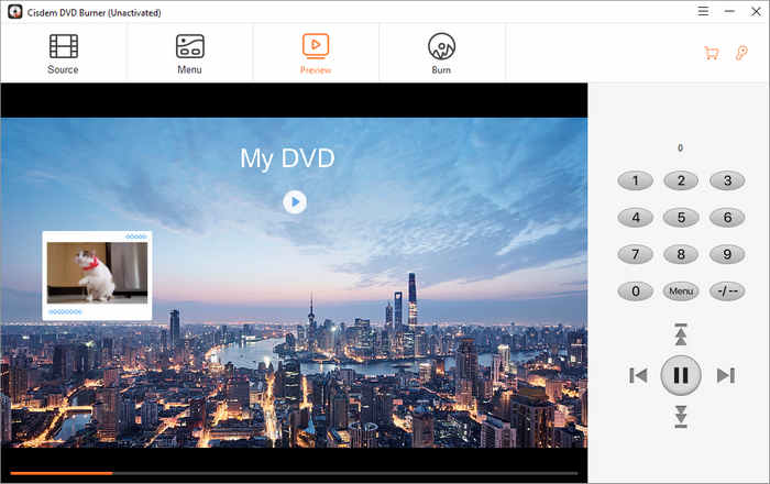 Step 5 You can choose the Preview tab to preview your DVD. Cisdem DVD Burner offers an emulated remote that allows you to control DVD playback.