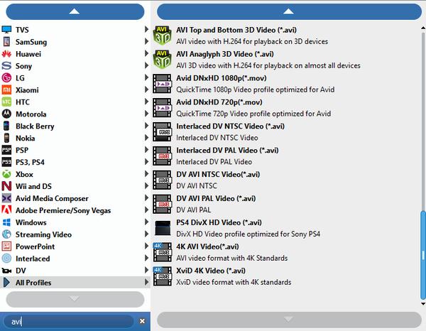 There is a "Profile" button on the bottom of the FLV to AVI Converter software. Click it and enter "AVI" to select the AVI format whatever you need. For example, you can select PSP 3000 AVI video to suite for your Sony PSP 3000.