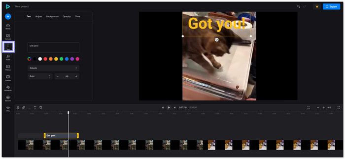 Step 3Click the Text tab to insert captions. Use filters or speed controls to enhance the animation.