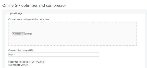 Do you prefer an online GIF compressor? In that case, use Ezgif. This is an excellent online tool that is capable of handling GIF files. Its optimizer and compressor feature can help you automatically reduce your file size. Plus, the uploading process is too simple and fast, which can let you save more time during the process. And, of course, it can provide a user-oriented interface that ensures every non-professional user can navigate all the helpful functions from the tool. What's more, various valuable functions allow you to enhance your GIFs. You can crop them based on your preferred size, add effects, resize them, add simple text, and more.