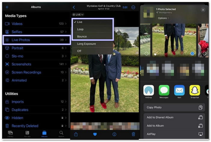 Step 4 Swipe up on the screen. You will see different effects: Live, Loop, and Bounce.