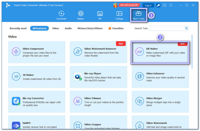 Once it opens, navigate to the More Tools section. You will find many valuable tools; look for GIF Maker and click on it to start creating your project.
