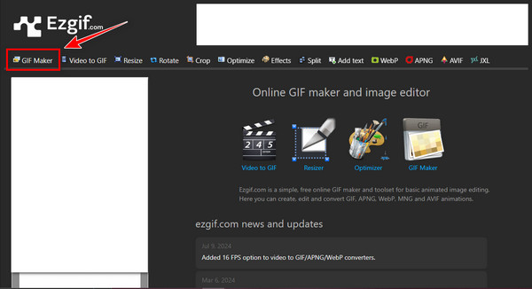 Step 1 On your browser, visit the Ezgif website. Then, click the GIF Maker option at the top.
