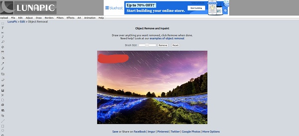 And that's it! Those are the steps to remove the watermark from your image using LunaPic. The problem with LunaPic is that it contains many disturbing ads that might distract you while removing watermarks and does not support all image formats. So, below, we will show you an alternative that you can use to remove watermarks.