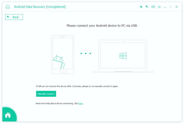 Download and install the restore app for Android on your computer, and then launch the program on your computer. Launch Android Data Recovery and connect your Android device to computer via USB cable. Wait for seconds before the device is detected.