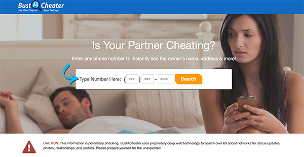 Have you ever considered to tracking an iPhone is via the phone number? Amazing, all you need to do is typing the phone number in a search box, and then the information will show instantly on the website. The method to track an iPhone by phone number is based on web technology, which only provides the information of the iPhone owner. You cannot use the information to get the lost iPhone. For reference, "BustACheater", "peoplefinders" and "SPOKEO" are 3 websites alternatively. The section just takes "BustACheater" for an example.