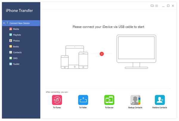 - 1. Plug your iPhone to computer with a USB cable. You'd better use the original accessory, if you want to keep your data security and enjoy iPhone Transfer's high speed.