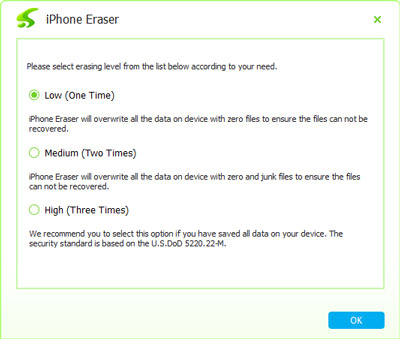 When you connect iDevice with the program, you can select the erasing level to make sure all message files can be deleted completely.