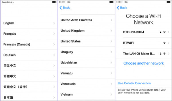Step 2: After that your iPhone will go to the factory settings. You should set up the iPhone with a language, region and more other information. Make sure to set up the Wi-Fi network in order to restore iPhone from iCloud backup.