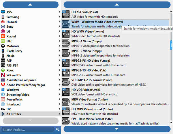 Click the drop down icon of "Profile" and select the WMV as the output format. And you are allowed to set the destination folder for your converted video files. Also, you can select your preferred audio track and subtitle for your video.