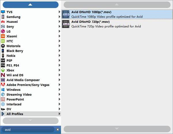 To convert MXF/P2 MXF to Avid Media Composer, you need to add them by clicking "Add Video" button to add several MXF files to the program, and then select Avid Media Composer compatible output format by opening the "Profile" drop-down list.