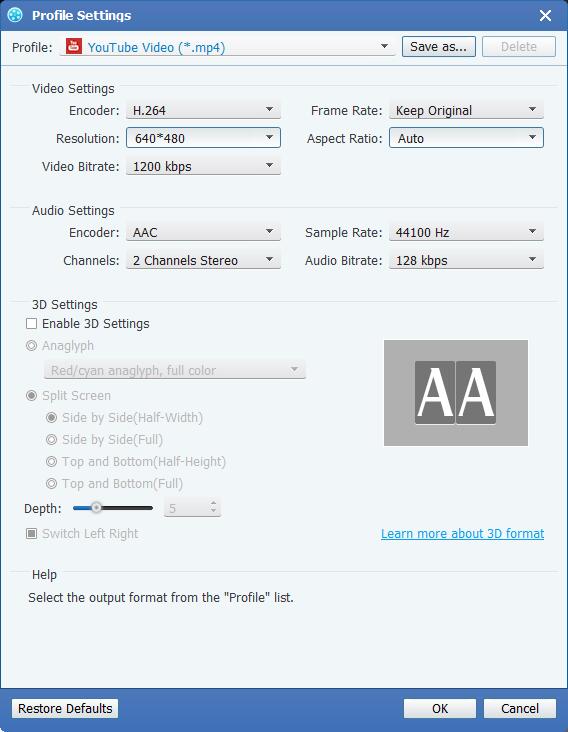 If you want to import MXF videos to YouTube, you need to select the output format by clicking "Profile" button and open the "Profile" list. Then you can choose YouTube Video (*.mp4*)" as the output format.