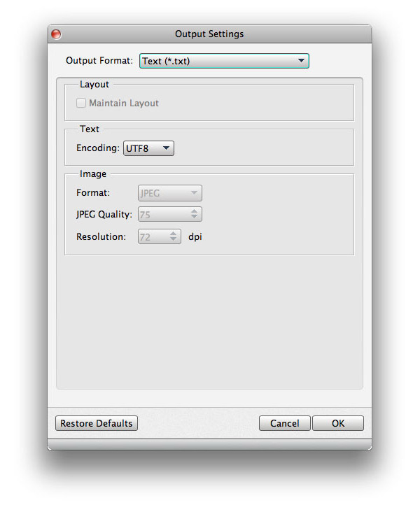 If the output format is document format, you're capable of modifying the layout, text encoding and image format/resolution.