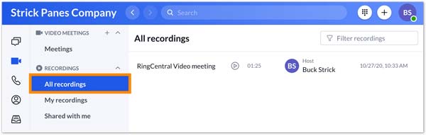 Step 3After that, you can hover your cursor over your recordings for RingCentral meetings, then click the Download button at the far right to download the recording RingCentral Meeting. Then you can share the videos with other participants accordingly.