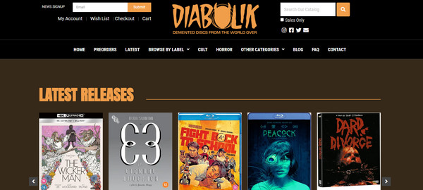 As mentioned earlier, DiabolikDVD is an online retailer specializing in horror, cult, and rare films, focusing significantly on DVDs and Blu-rays. It exclusively offers physical media, allowing customers to browse and make purchases through their online platform.