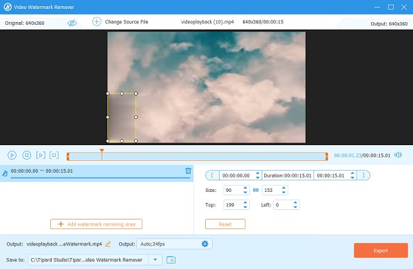 Step 4 Afterward, click the Add watermark removing area button on the following interface. And then, you will be directed to a new interface.