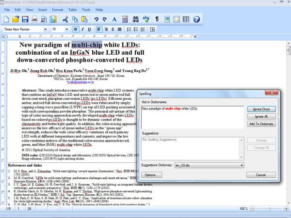 AbleWord is a very capable word processing application, which reads and writes most popular document formats, including PDF files. Just as the name of AbleWord, the free PDF editor empowers you to edit PDF files as simple as Word documents. You are able to convert PDF to Word. It is also a splendid Word processor and supports most of Microsoft Word features. It is fully featured PDF editor, which supports image formatting, tables, headers & footers and includes spell checking and print preview functions. And you can use it for free even for commercial use.