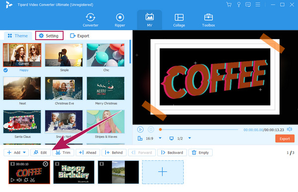 Step 2Next is to choose your desired Theme to use. Then, if you want to add filters and make some customizations, click the Edit button. Otherwise, proceed to the Setting menu.