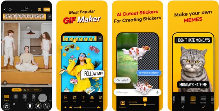 ImgPlay is the most highly rated GIF maker app that allows you to convert photos, burst pictures, and video footage into shareable GIFs on iPhones. It is easy to edit frame by frame, add text or stickers and also change the speed.