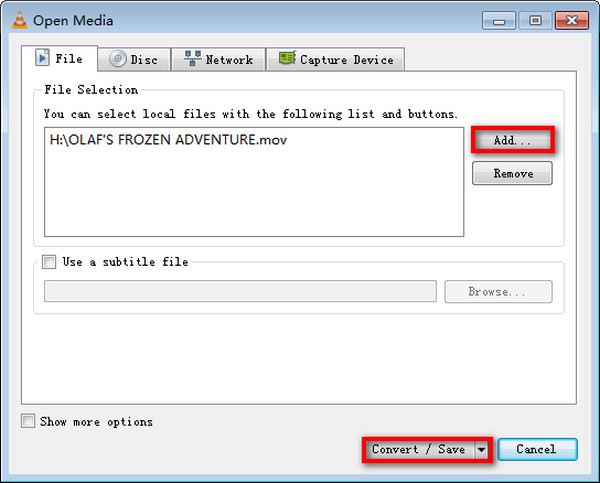 Step 2Click on Add under the File tab to look for and select a HEVC-codec video file you want to get converted.