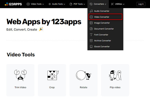Step 1Search 123apps Video Converter on your browser and go to the main page. Then, go to the Converter and choose the Video Converter option.