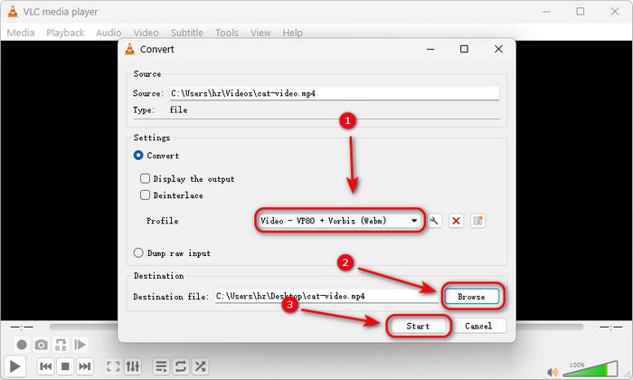 2. Convert MP4 to WebM with VLC
