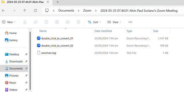 Step 1Locate the folder where your Zoom recording is stored. It is usually in your Documents folder under Zoom. If you cannot find it, try opening your Zoom app, going to Meetings, and opening one of the recordings. This will show you the folder containing all your Zoom recordings.