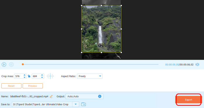 Step 4 After cropping the clip, you can save it on your computer by ticking the Export button below.