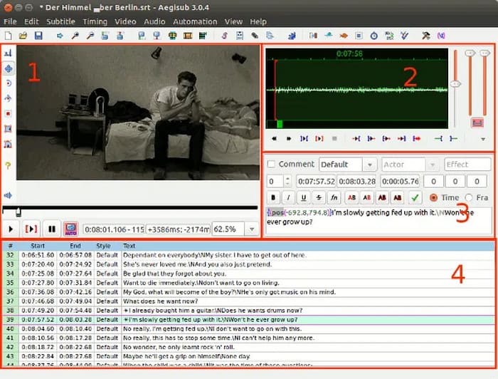 Subtitle Workshop is a tried and true subtitle editor that allows fast text-based editing.