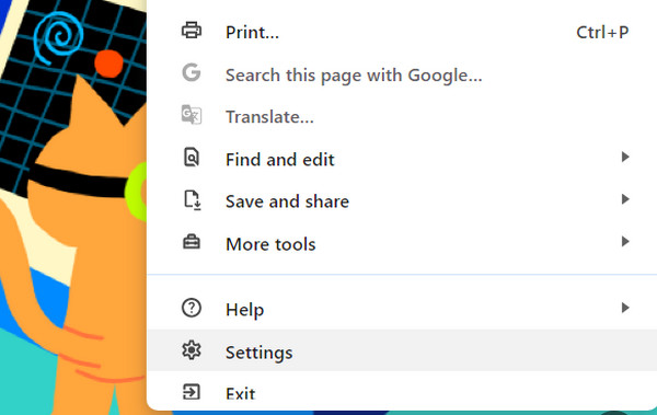 Step 1Open your browser and click the three-dotted button in the upper right corner. Then, select the Settings option.