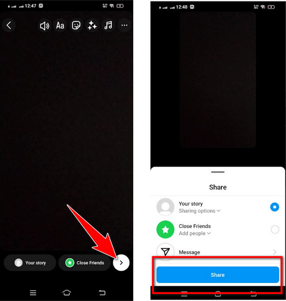 Step 3 When you are done, click the arrow button and tap Share to post it as an Instagram Story.