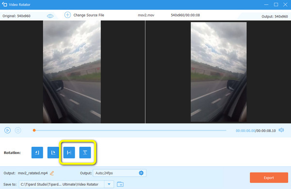 Step 4 If you need to flip the video upside-down, here is the trick: tap the Rotate button two times, then hit Flip. Now, your video is mirrored vertically.
