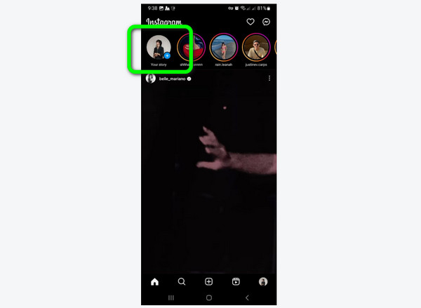 Step 2When the main home page already appears on your screen, navigate to the upper left corner of the screen. Then, you will see the Your Story feature. Click to see and select the photos and videos you want to post.