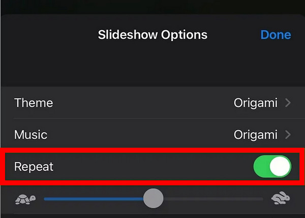 Step 7 Switch on the Repeat function to enable the movie to loop continuously when playing in Slideshow mode.